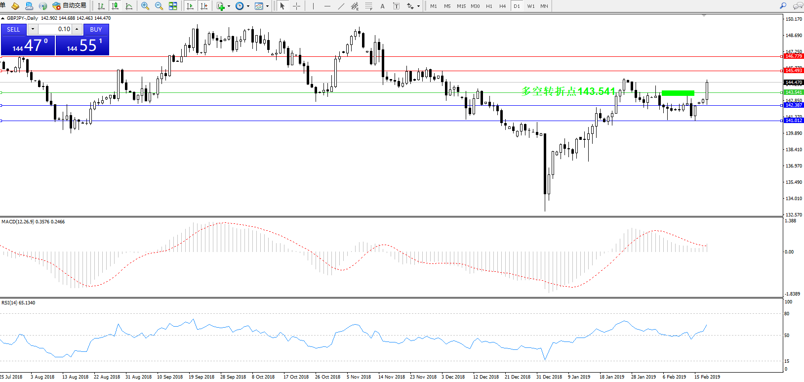 交易策略:143.541上方看涨,目标143.493146.779