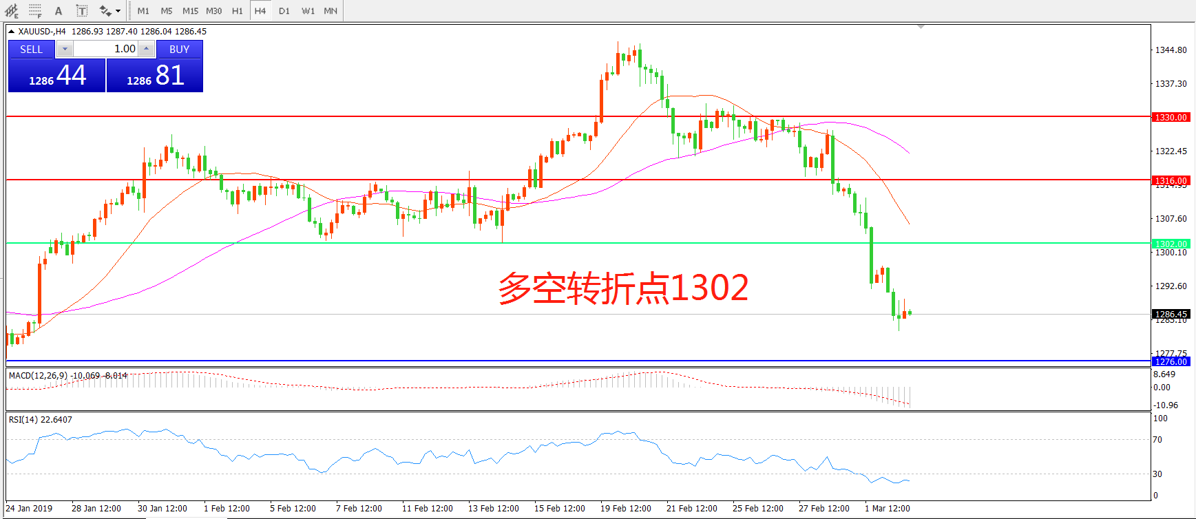 多空转折点:1302.00