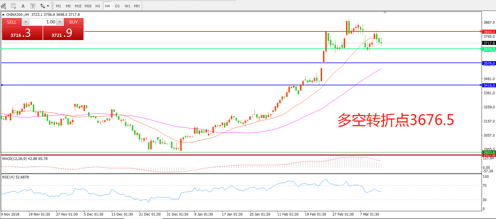 交易策略  在3676. 5之上看涨,目标3800.00    3892.00