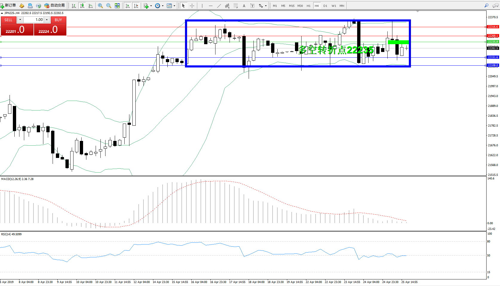 交易策略:22235下方看跌,目标22151、22108