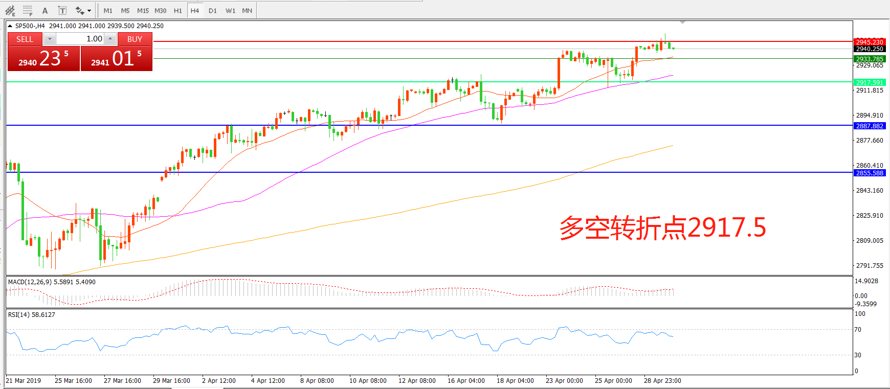 多空转折点:2917.50