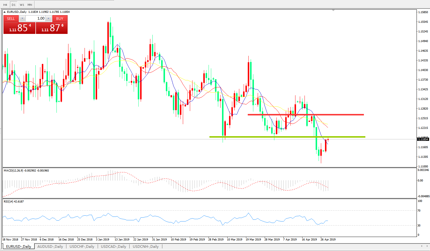 交易策略:在1.1200之下,看跌,目标价位为 1.1100,然后为1 .1030。