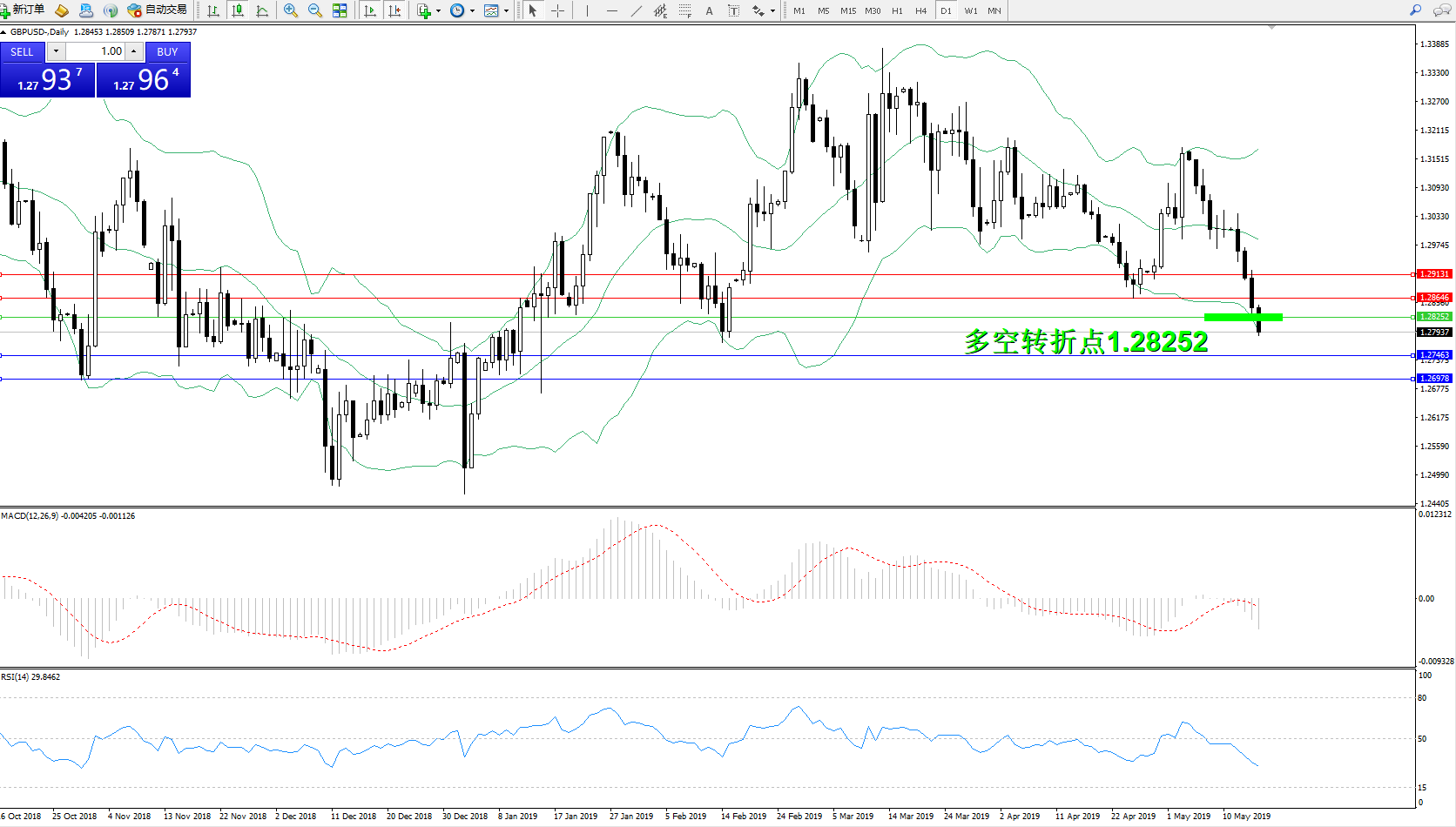 交易策略:1.28252下方看跌,目标1.274631.26978
