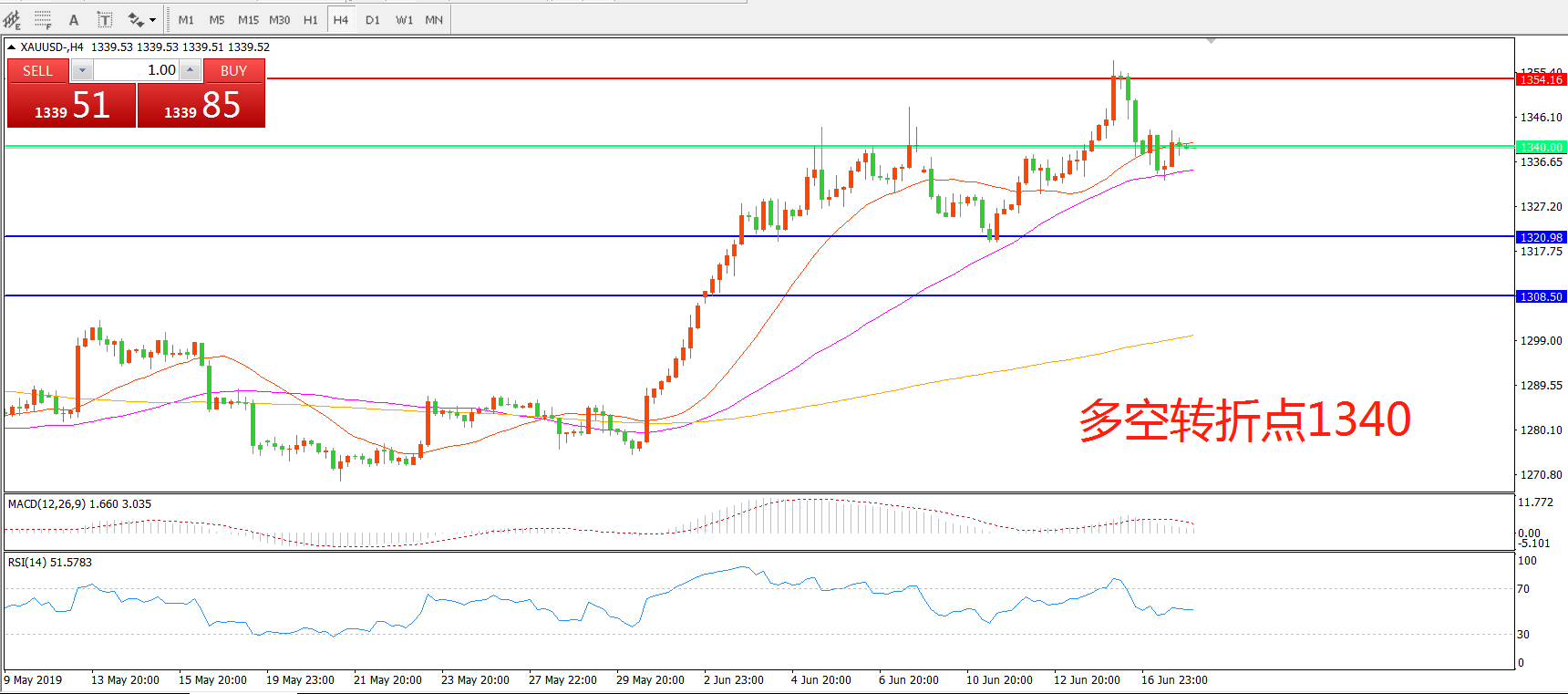 多空转折点:1340.00