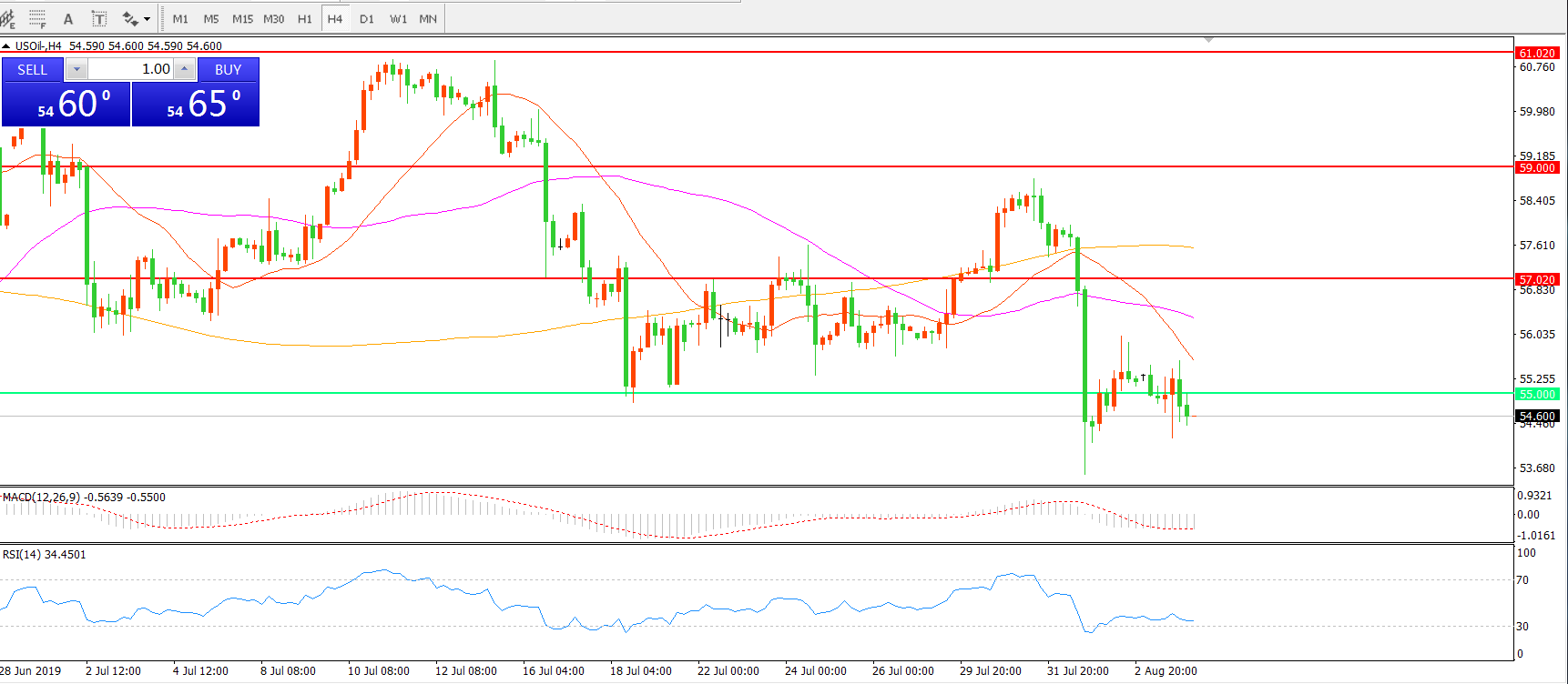 美国原油USOIL     4小时图