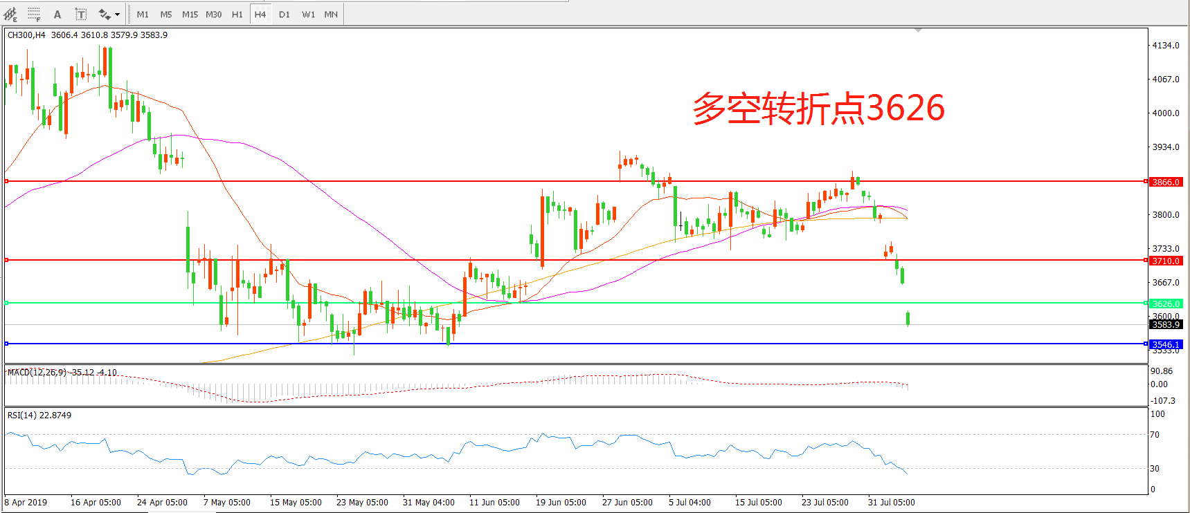 多空转折点:3626.00