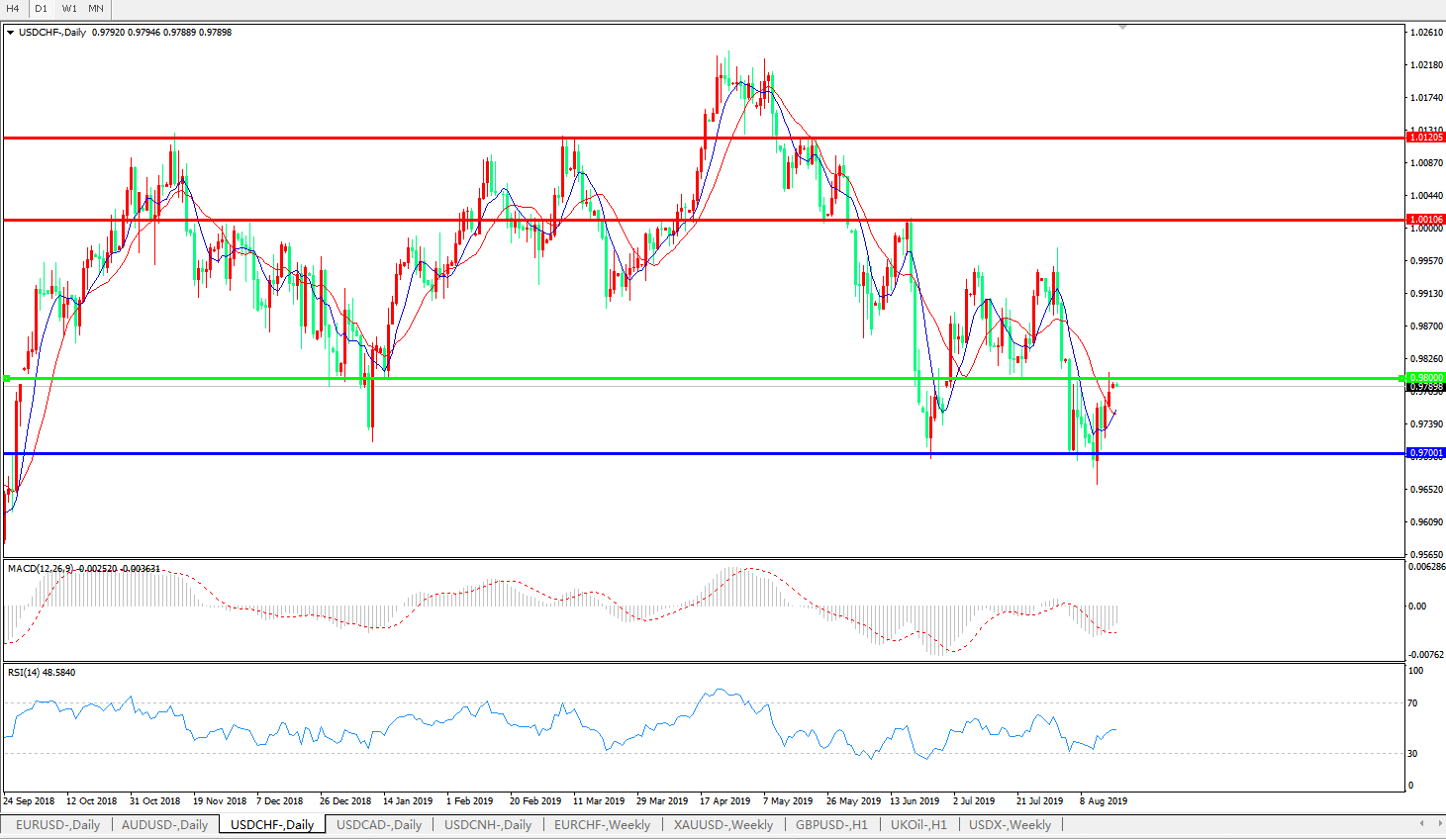美元兑瑞郎USDCHF 日线图: