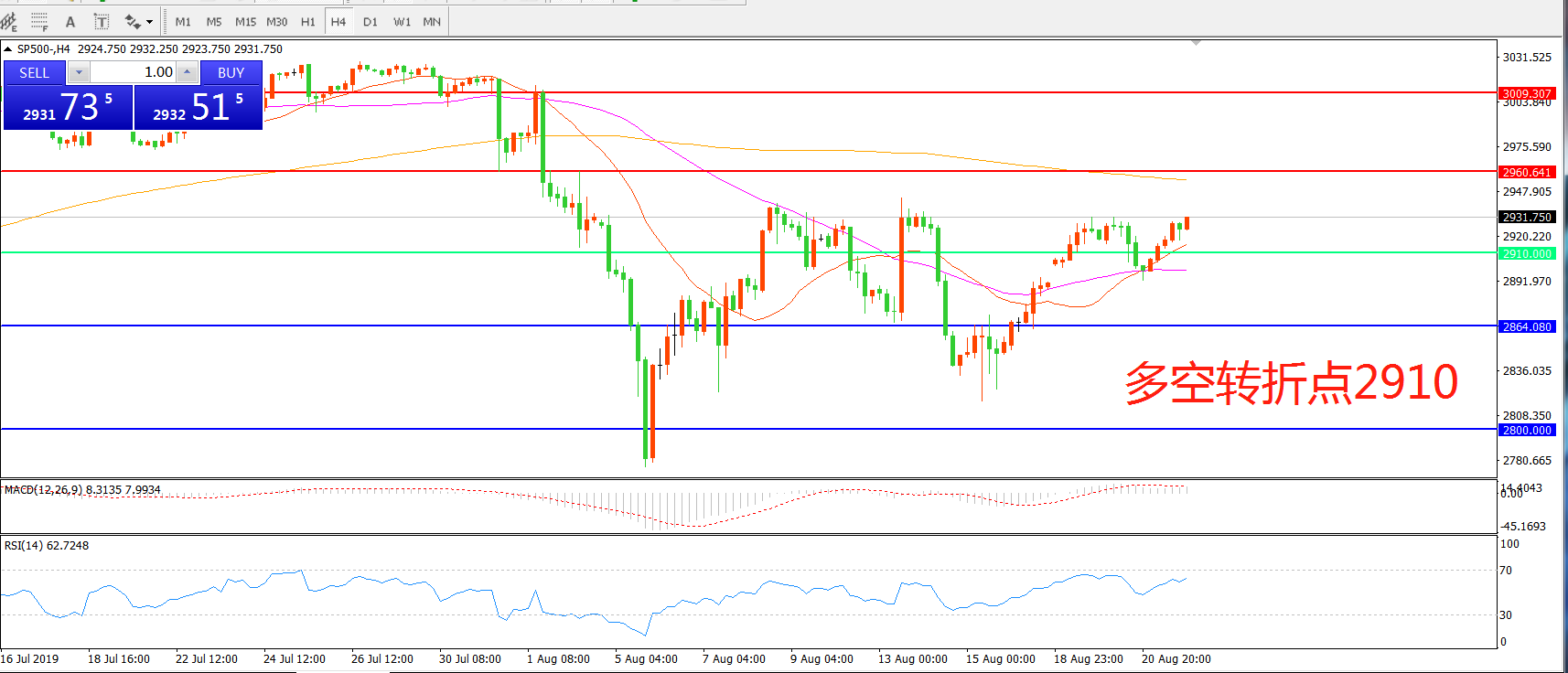 多空转折点:2910.00