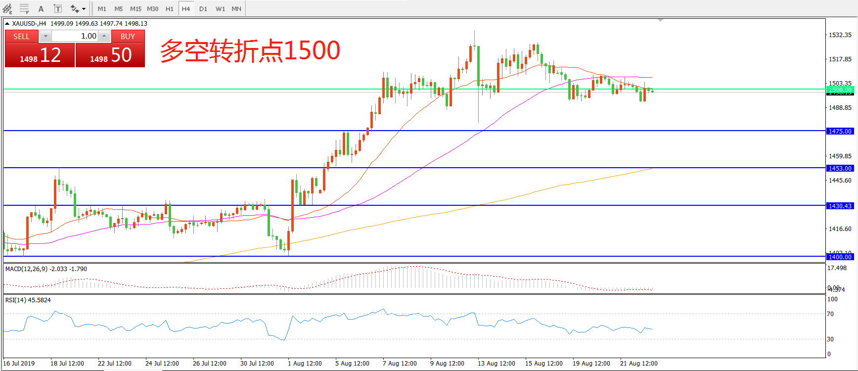 多空转折点:1500.00
