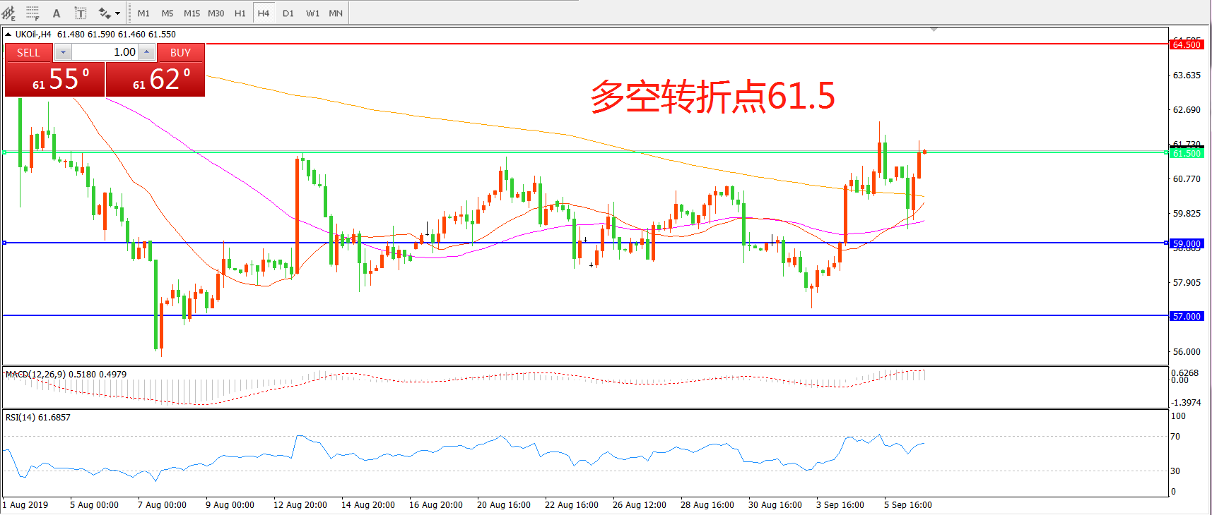多空转折点:61.50
