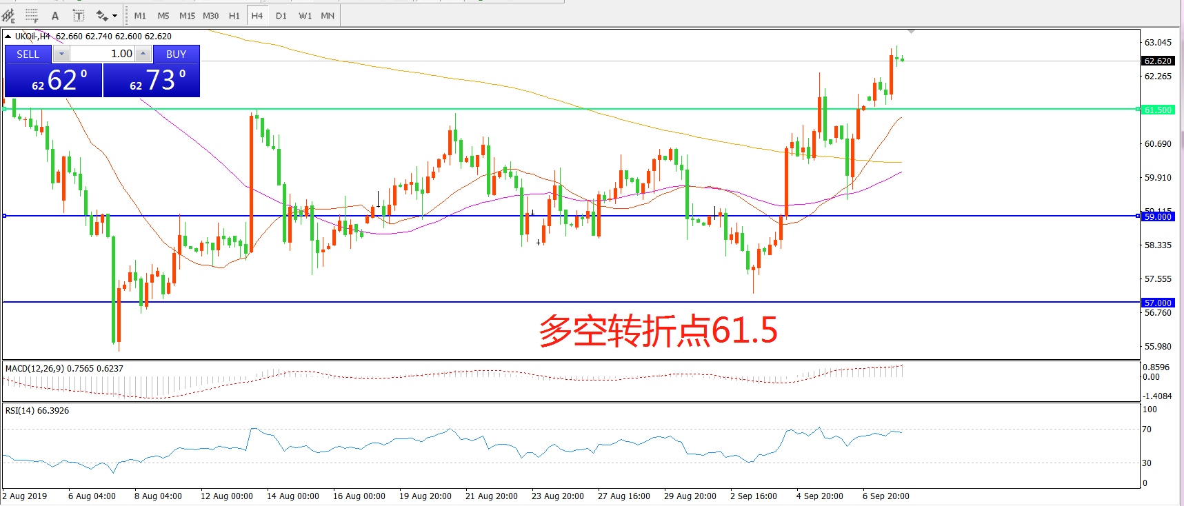 交易策略:在61.50之上看涨,目标64.50   66.70