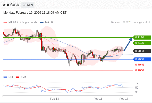 在 0.7060 之上,看涨,目标价位为 0.7105 ,然后为 0.7120 。