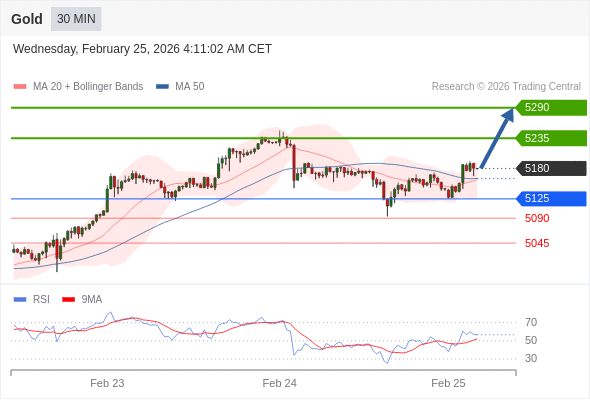 在 5125 之上,看涨,目标价位为 5235 ,然后为 5290 。
