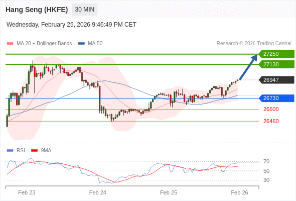 交易策略: 在 26730 之上,看涨,目标价位为 27130 ,然后为 27250 。