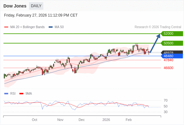 Dow Jones 短线: 看涨。