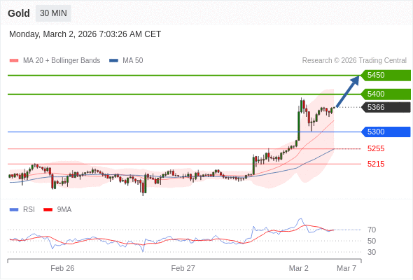 交易策略: 在 5300 之上,看涨,目标价位为 5400 ,然后为 5450 。
