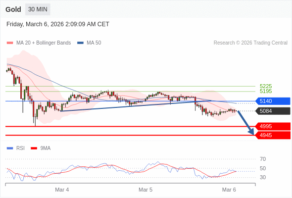 在 5140 之下,看跌,目标价位为 4995 ,然后为 4945 。