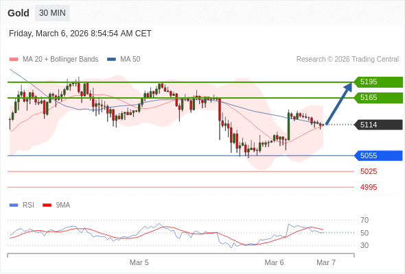在 5055 之上,看涨,目标价位为 5165 ,然后为 5195 。