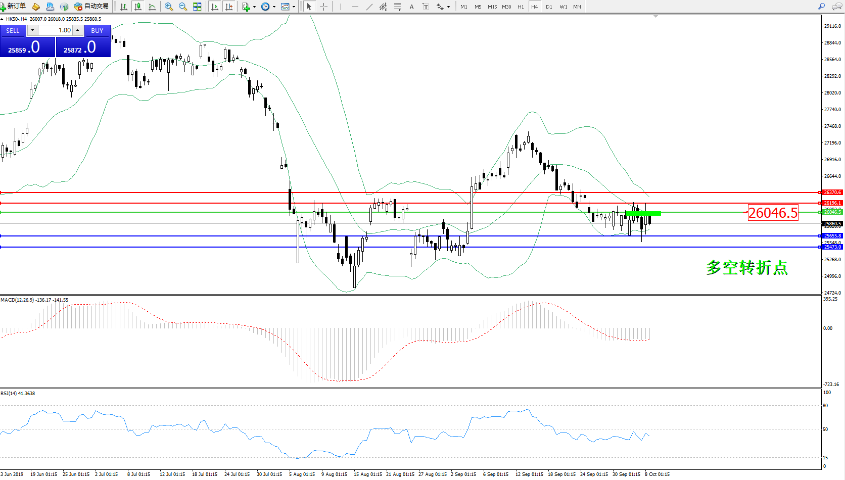 恒指HK50 ——4小时K线图显示: