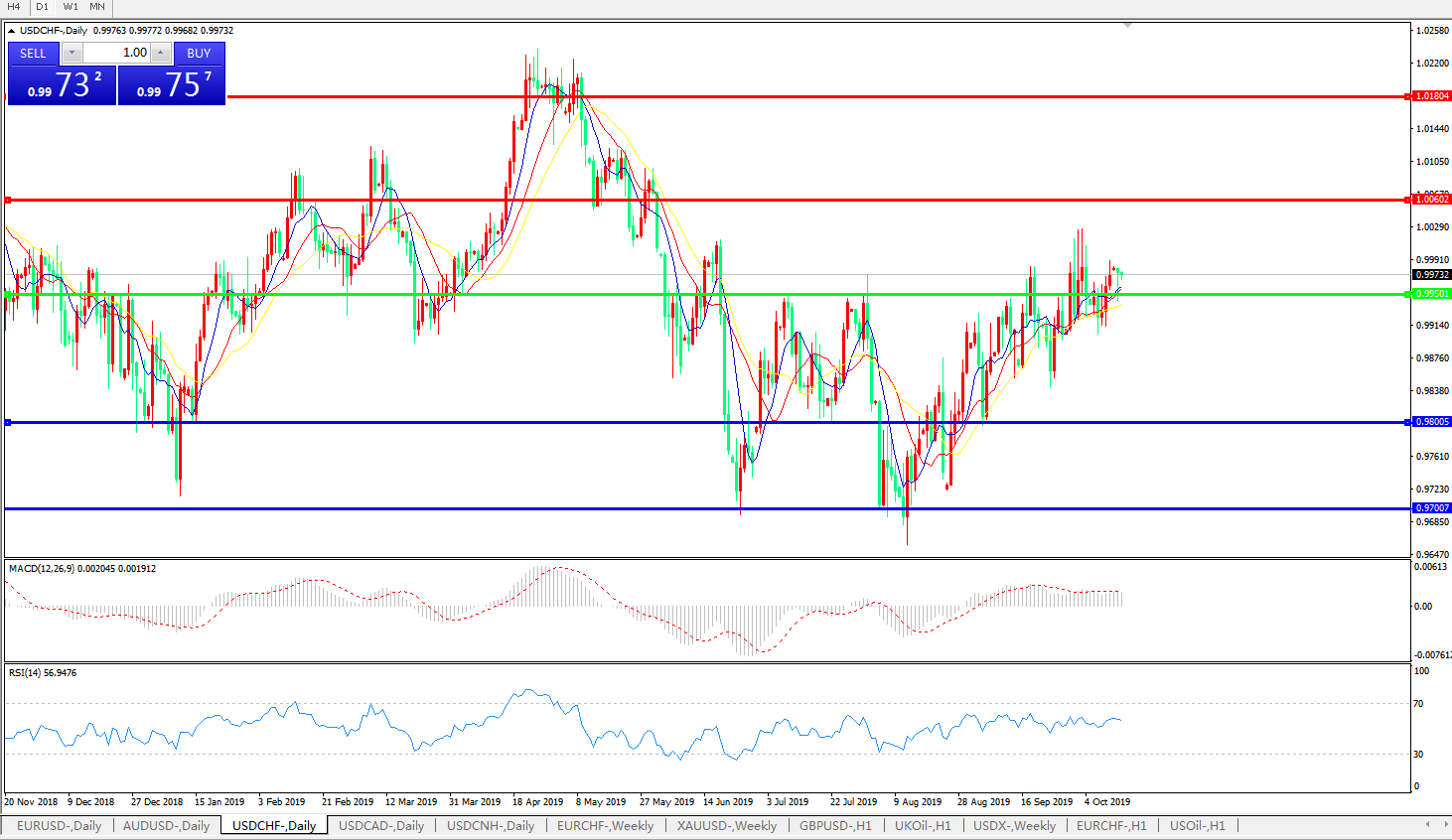 美元兑瑞郎USDCHF 日线图:
