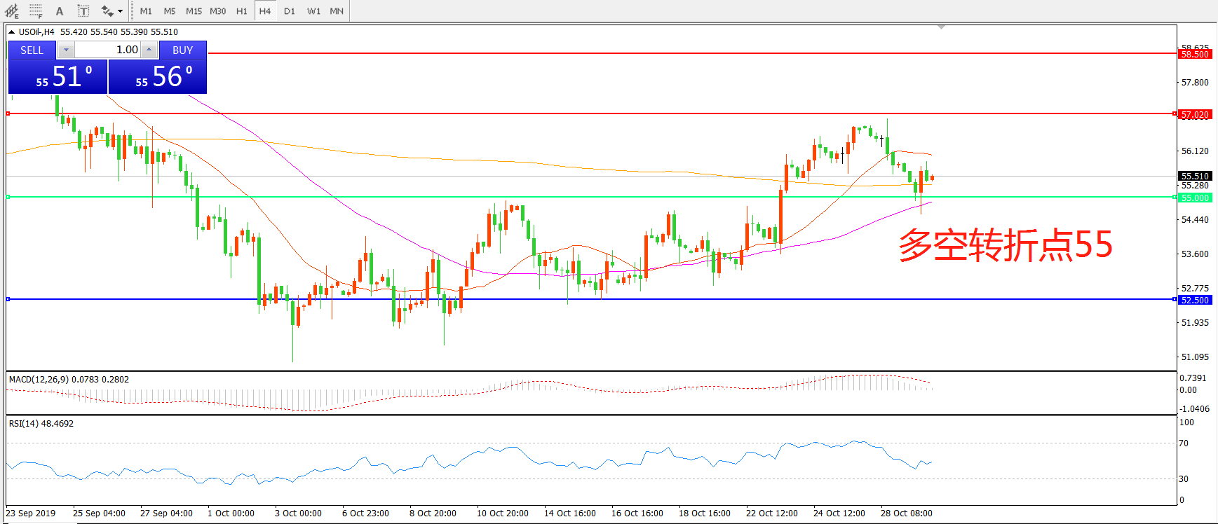 交易策略:在55.00之上看涨,目标57.00 58.50