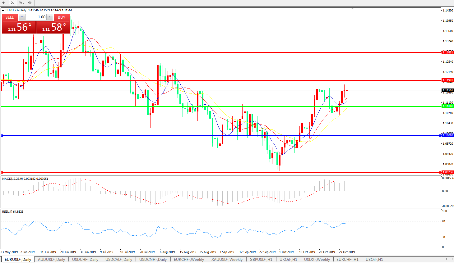 交易策略:1.1100上方看涨,目标1.1190、1.1280