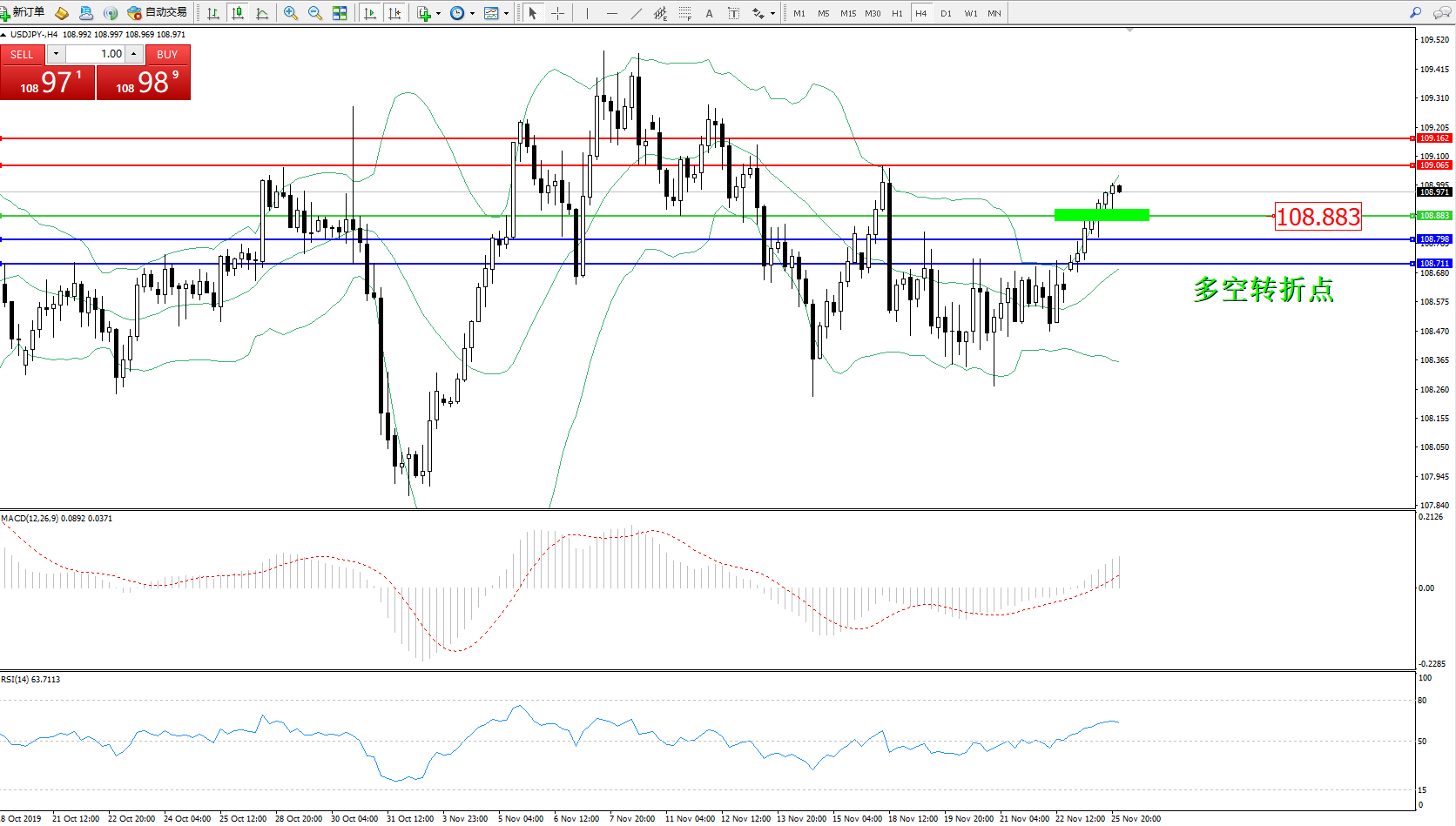 交易策略:108.883上方看涨,目标109.065109.162
