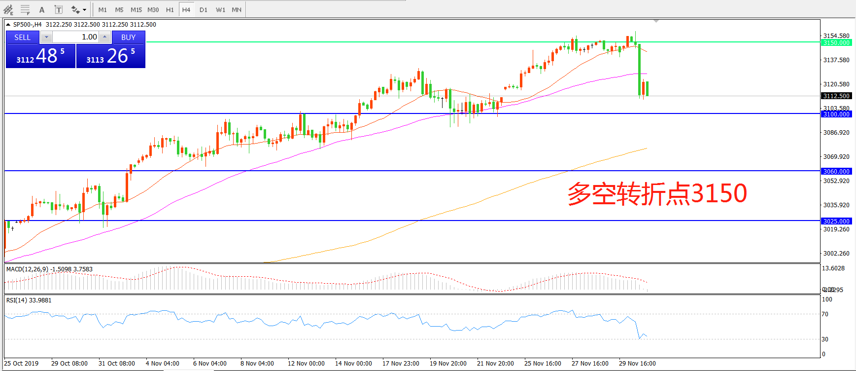 多空转折点:3150.00