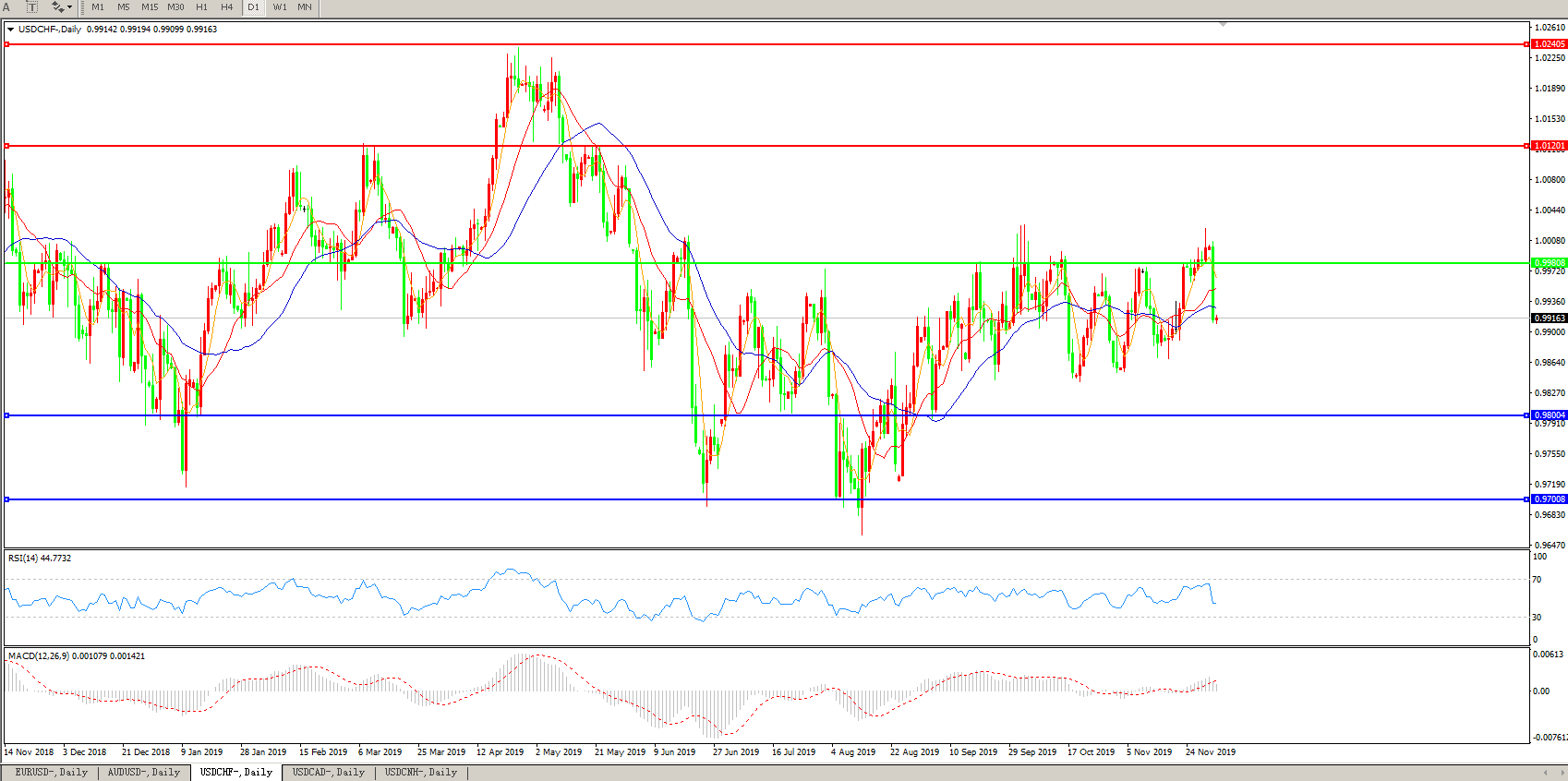 美元兑瑞郎USDCHF 日线图: