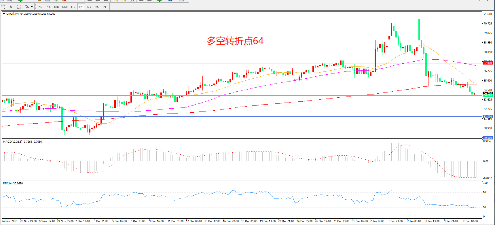 交易策略:在64.00之下看跌,目标62.00    60.00