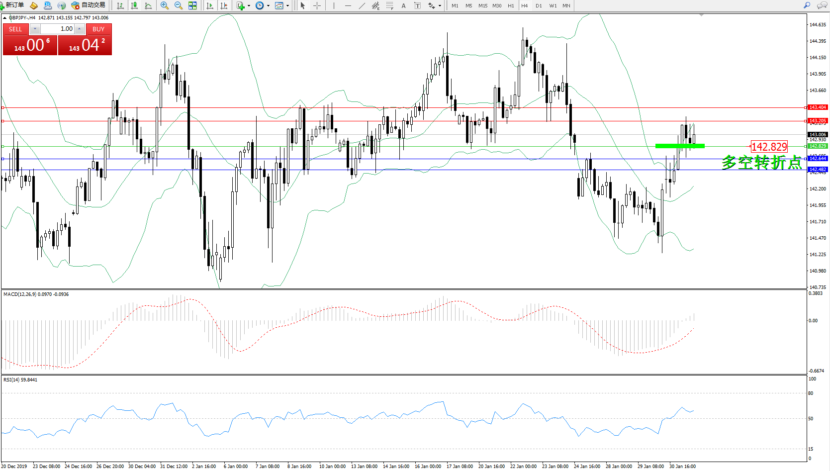 交易策略:142.829上方看涨,目标143.205、143.404
