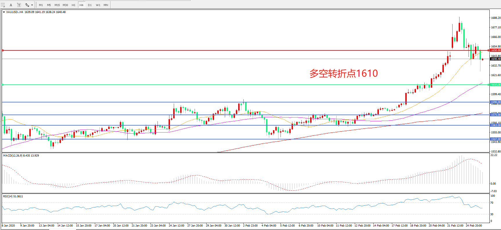交易策略:在1610.00之上看涨,目标1650.00 1700.00