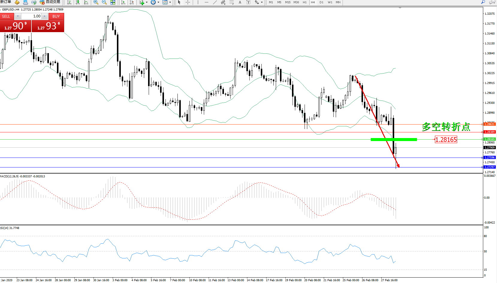 交易策略:1.28165下方看跌,目标1.275961.27297