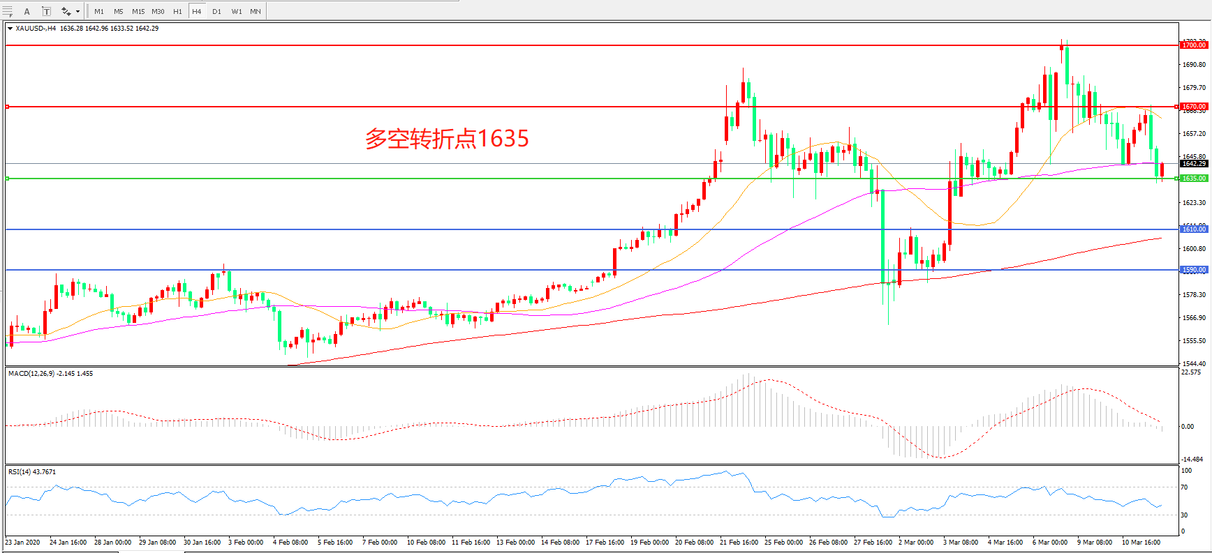 现货黄金XAU/USD    4小时图