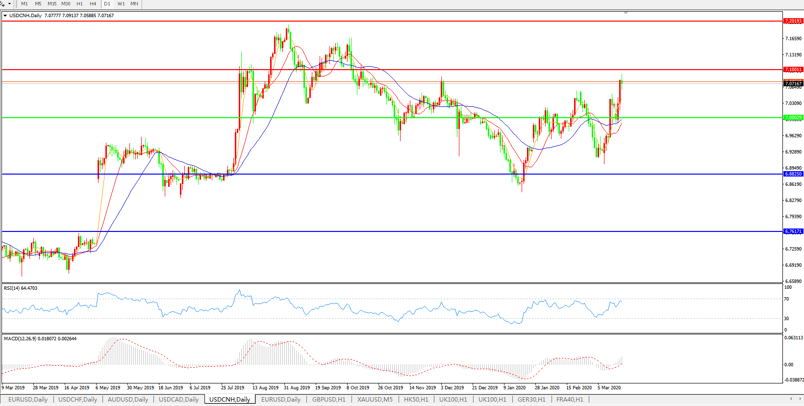 美元兑人民币USDCNH    日线图: