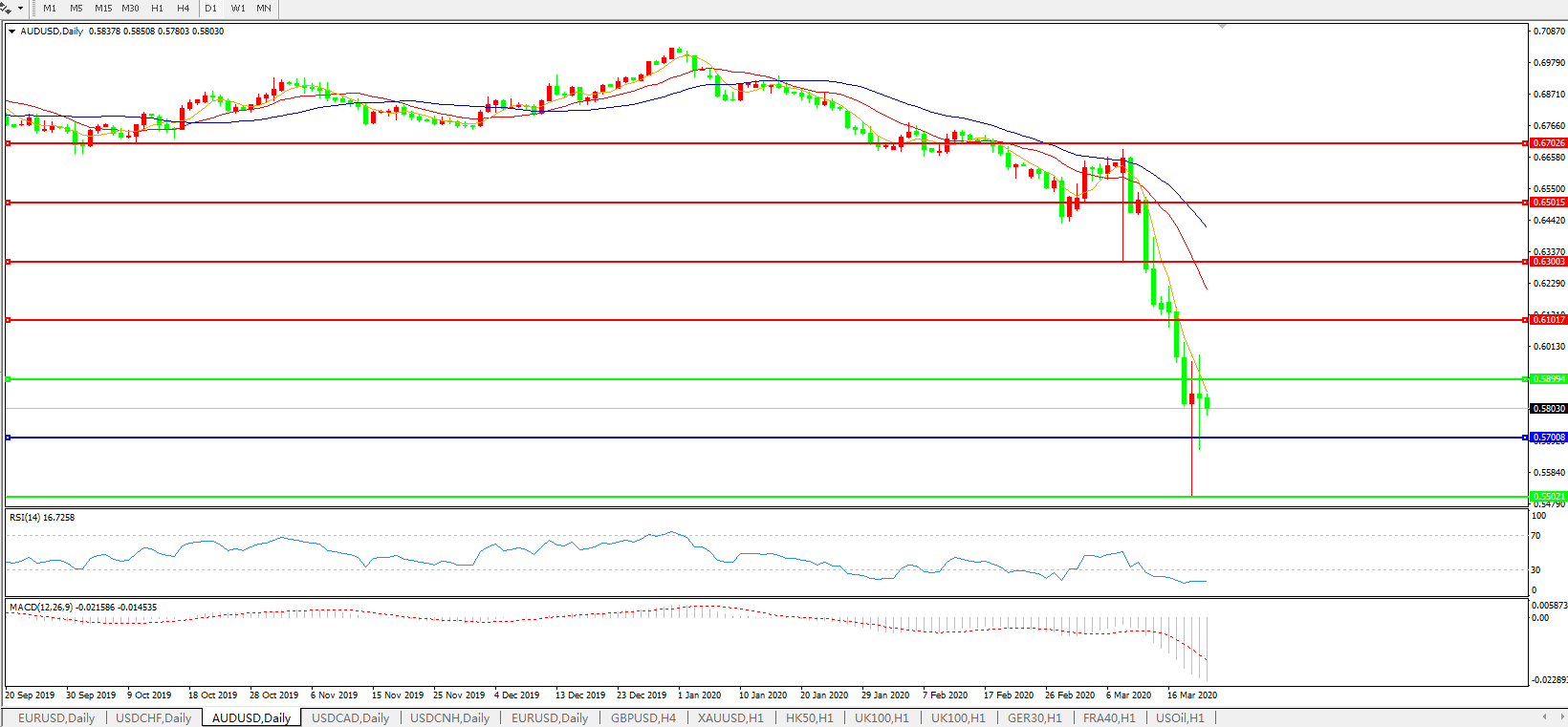 澳元兑美元AUDUSD 日线图: