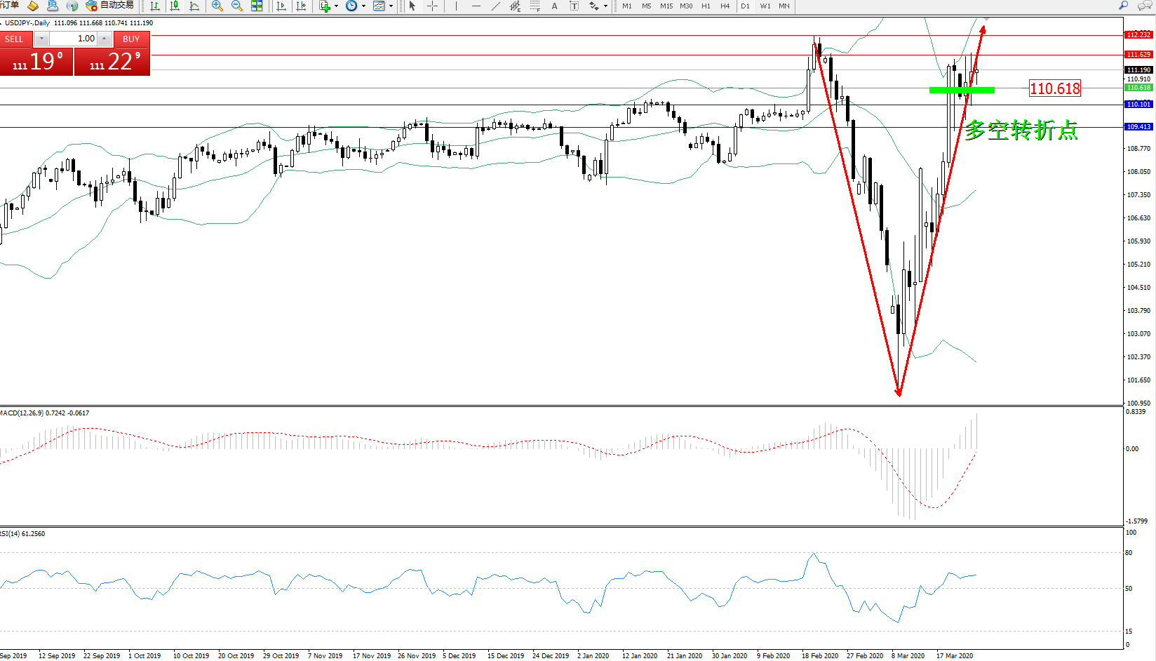多空转折点:110.618
