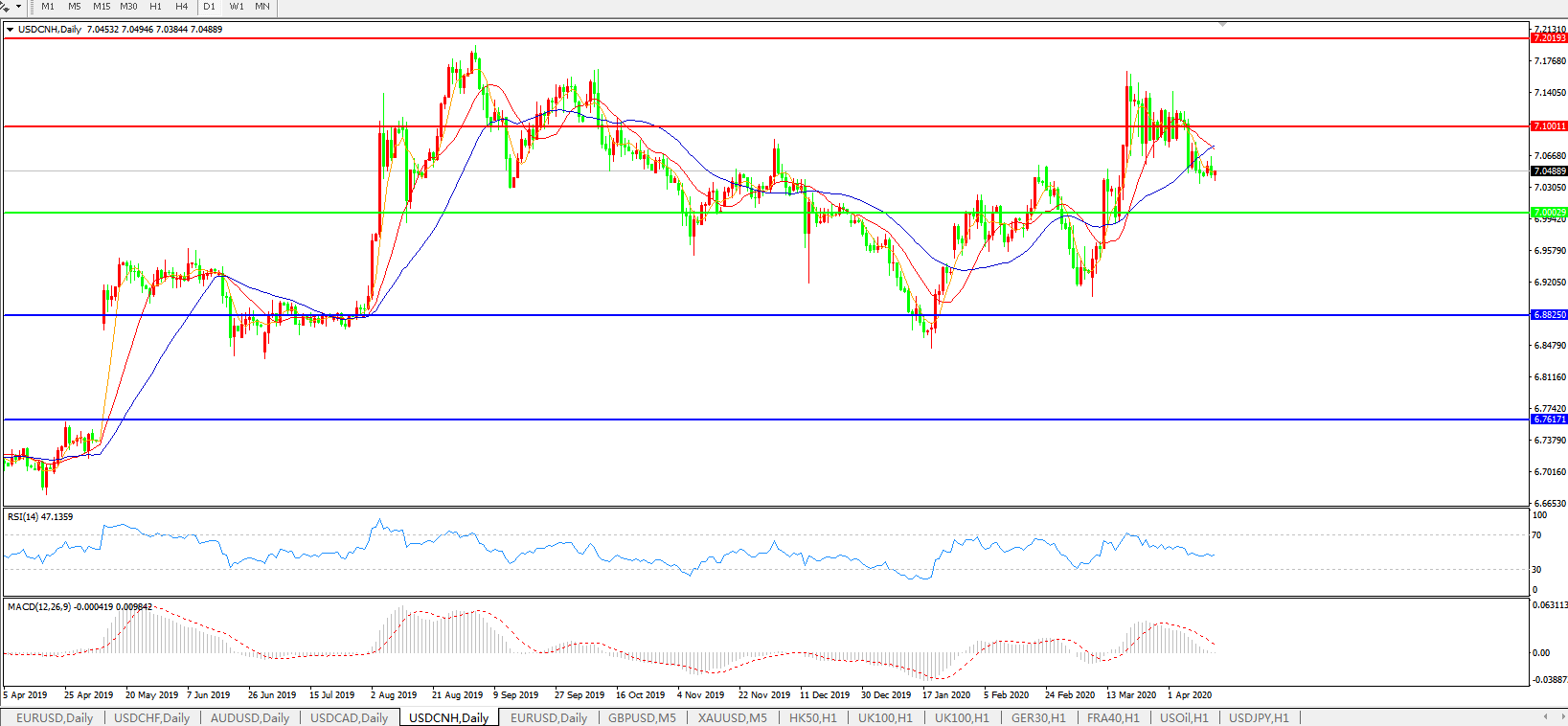 技术面简析:日图均线整体呈空头排列,汇价窄幅整理波动不大,MACD于0轴上方拐头下行且量能萎缩殆尽,RSI维持震荡走平态势,预计短期汇价将7.0关口上方弱势运行,重点关注多空转折区域7.0关口的争夺。