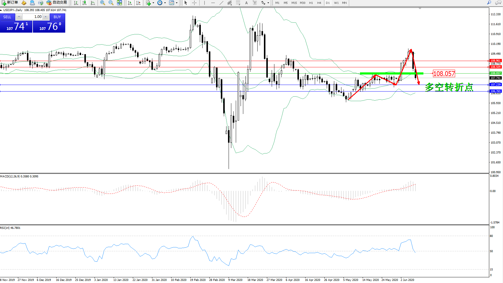 技术点评:多头动力延续布林带指标上轨持续震荡上扬后遇阻回撤,急速下挫至中轨下方,有进一步下行态势,布林带指标呈张口走势后,开始缓慢收口,关注中轨附近节点,该位正是前期整理阶段上方位置,MACD指标处于0轴线上方多头区域开始缓慢下移中,RSI指标处于多头区域高位急速下挫跌破50均衡线进入空头区域迹象;