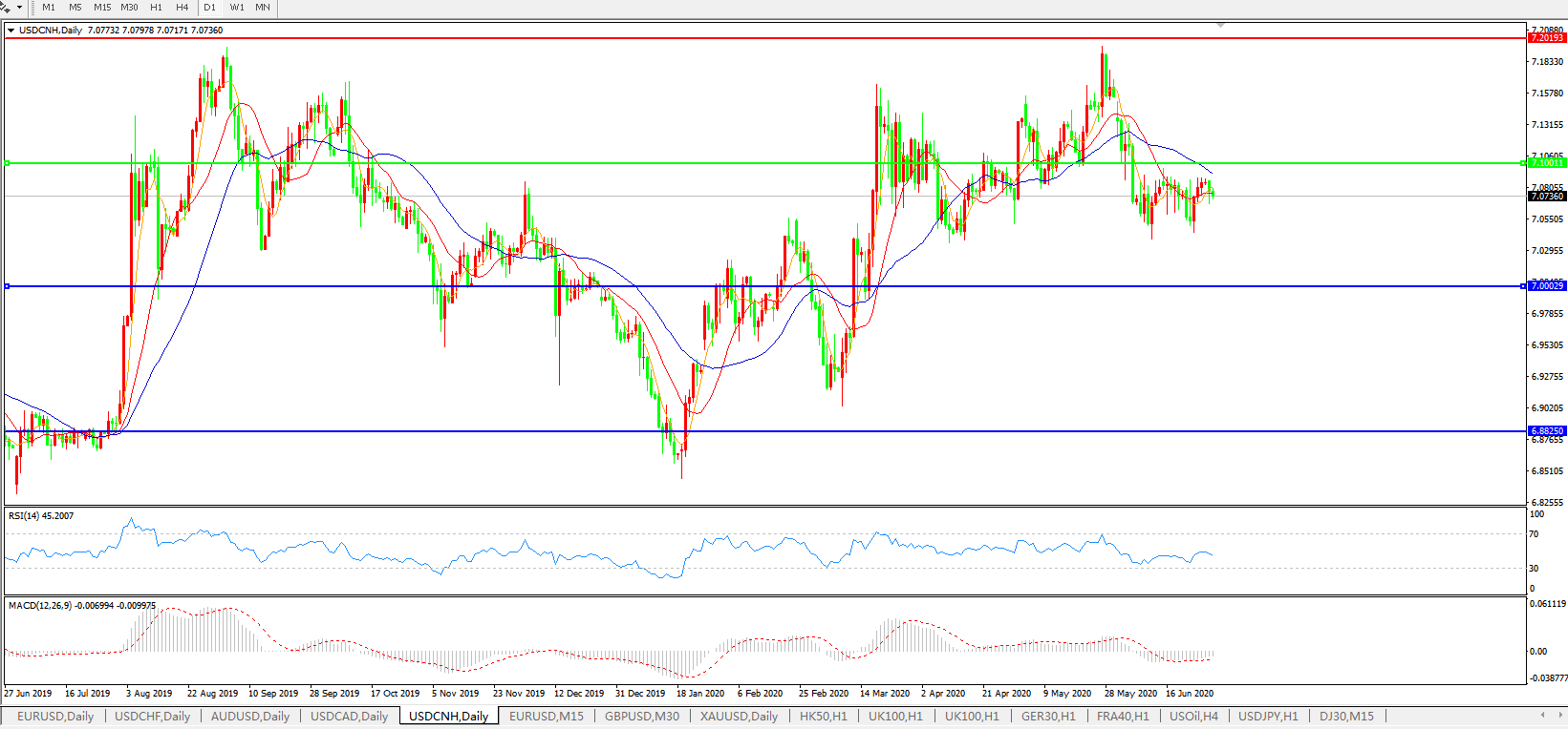 美元兑人民币USDCNH    日线图:
