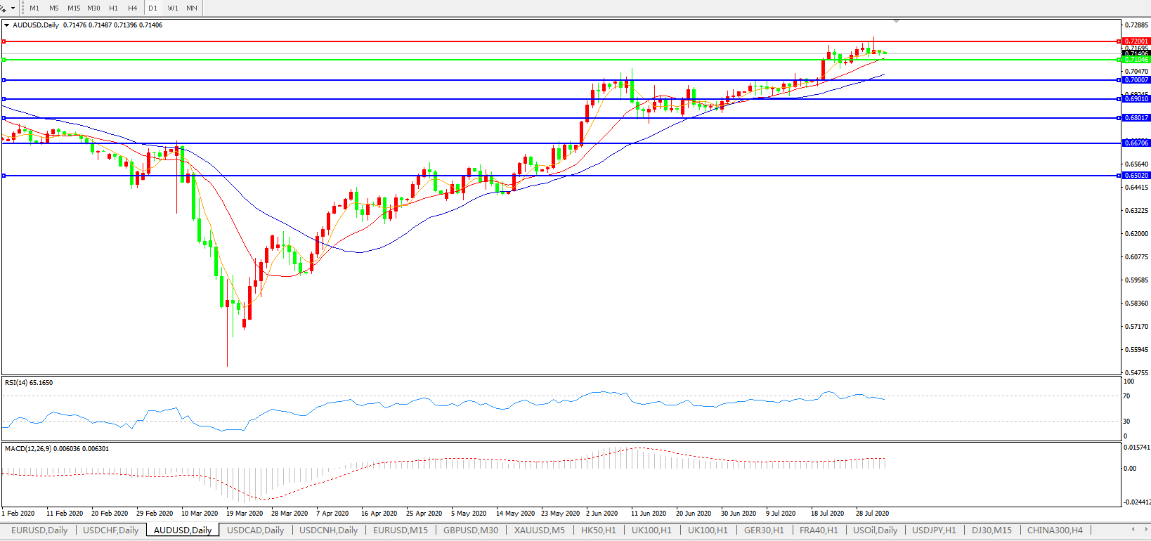澳元兑美元AUDUSD 日线图: