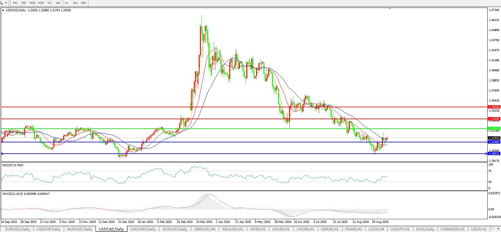 美元兑加元USDCAD    日线图:
