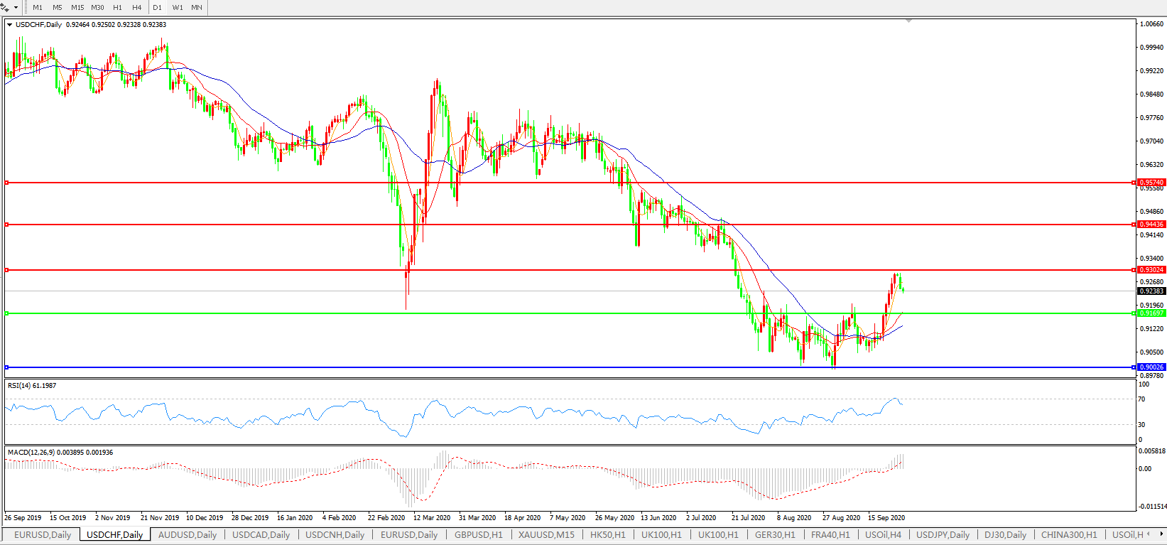 美元兑瑞郎USDCHF 日线图: