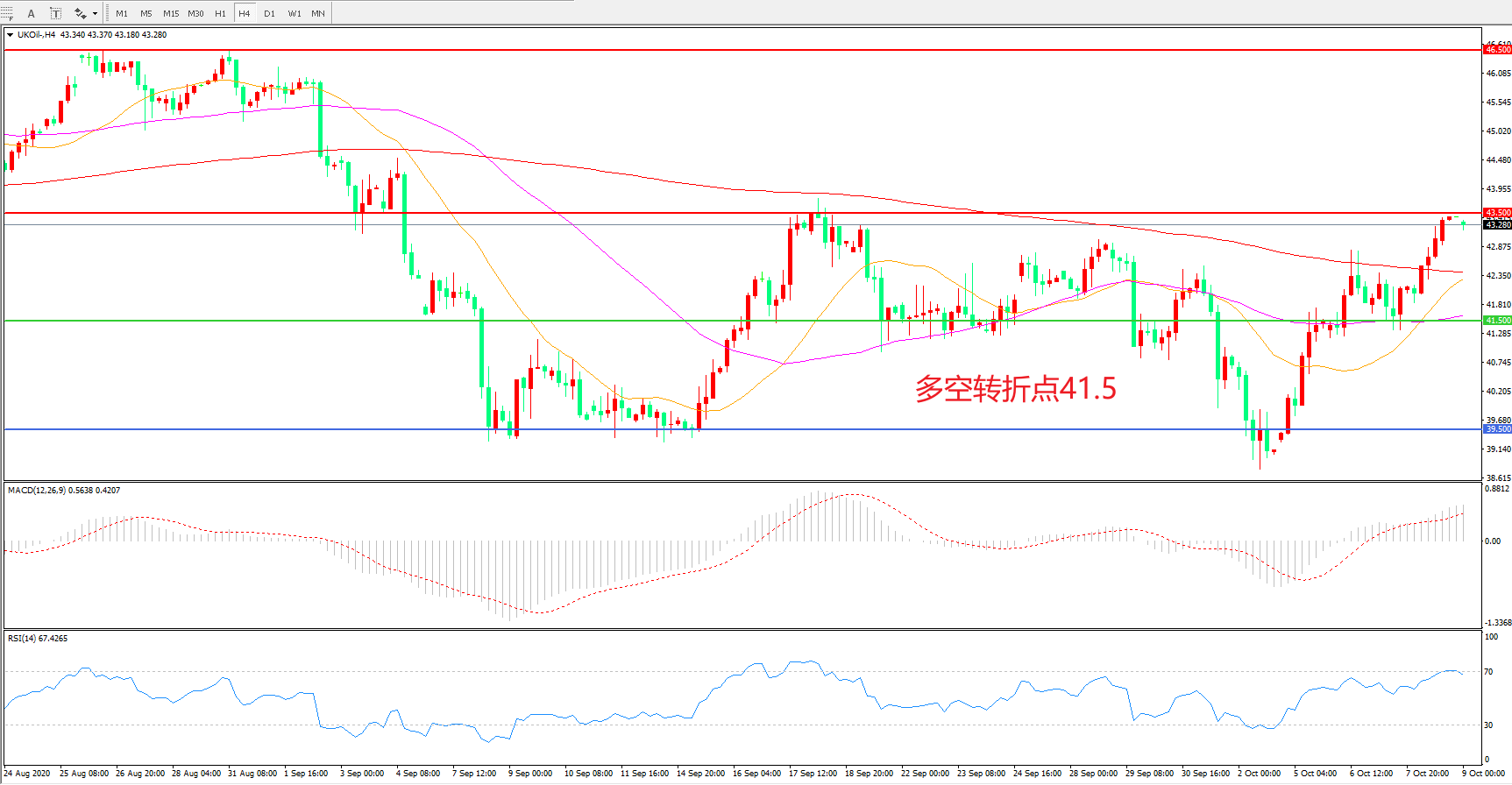 交易策略: 在41.50之上看涨,目标43.50 46.50