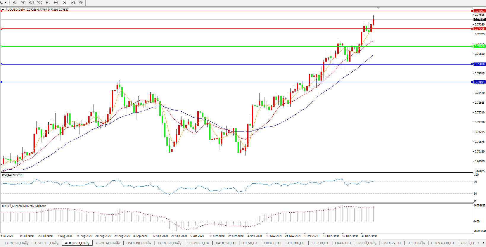 交易策略:0.7600上方看涨,目标0.7700、0.7800