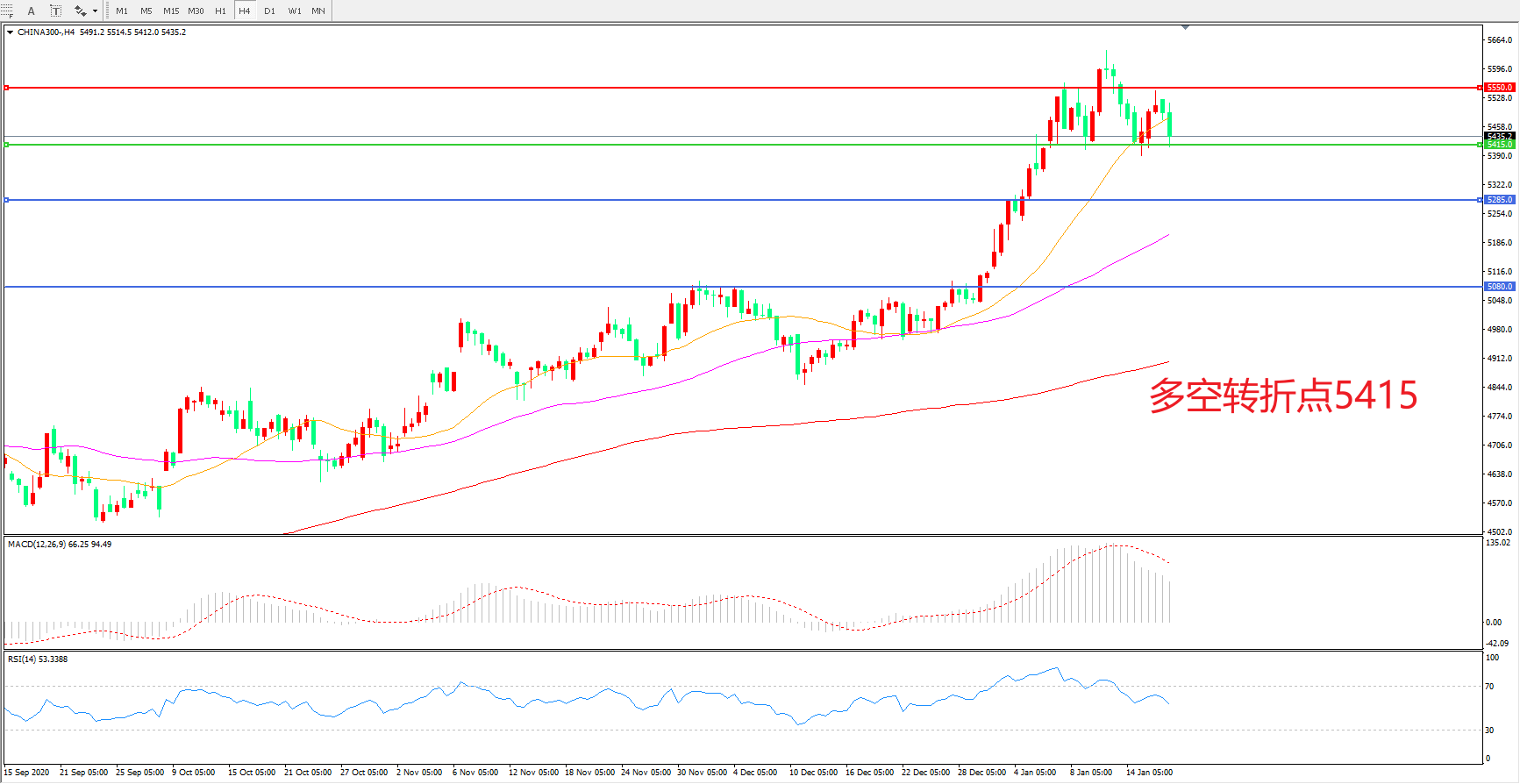多空转折点:5415.00