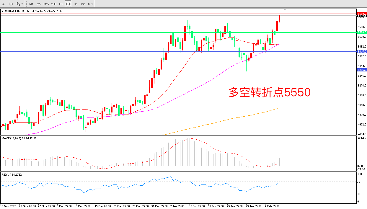 交易策略:在5550.00之上看涨,目标5680.00                              5800.00