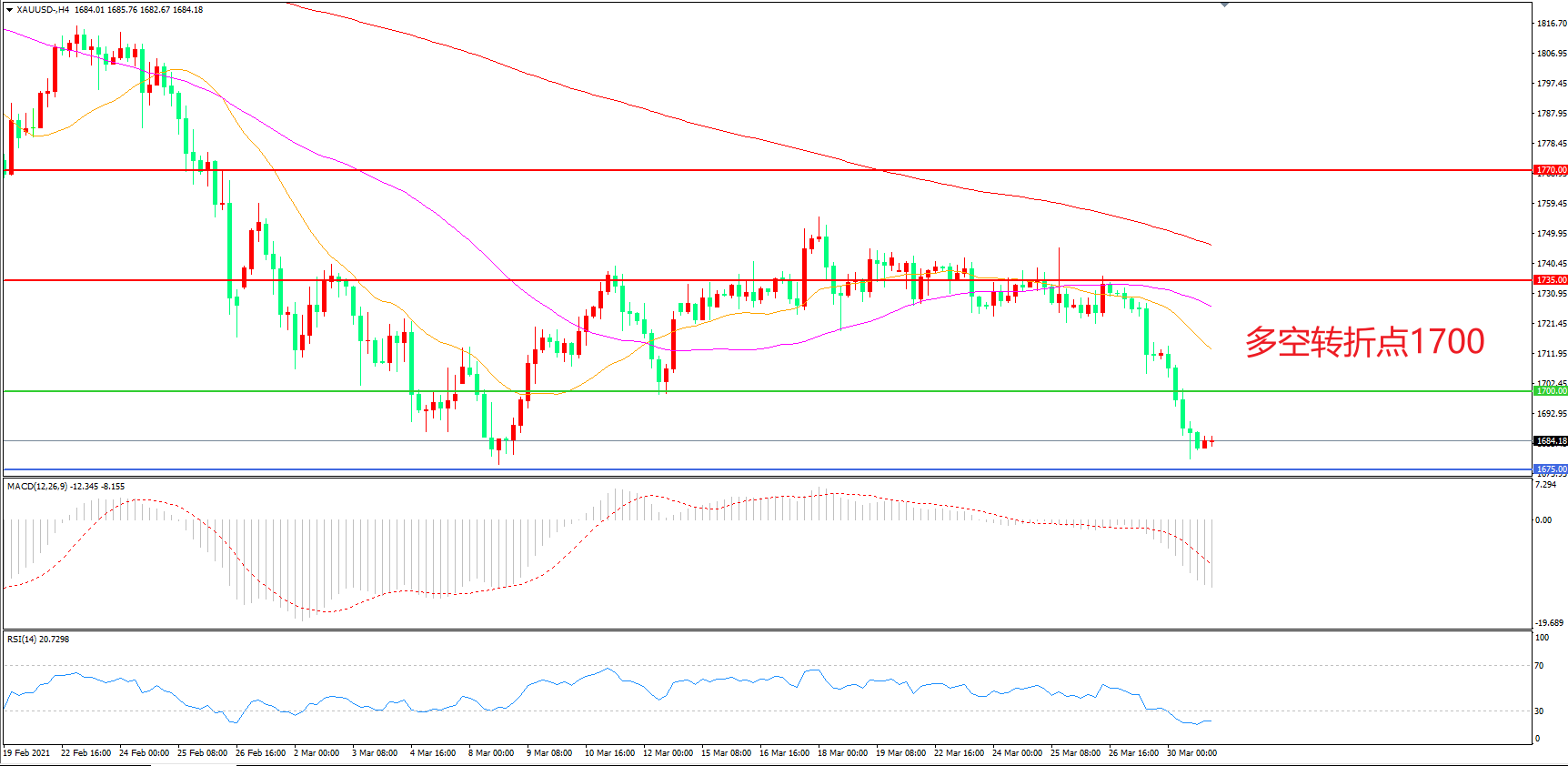 交易策略:在1700.00之下看跌,目标1670.00 1630.00