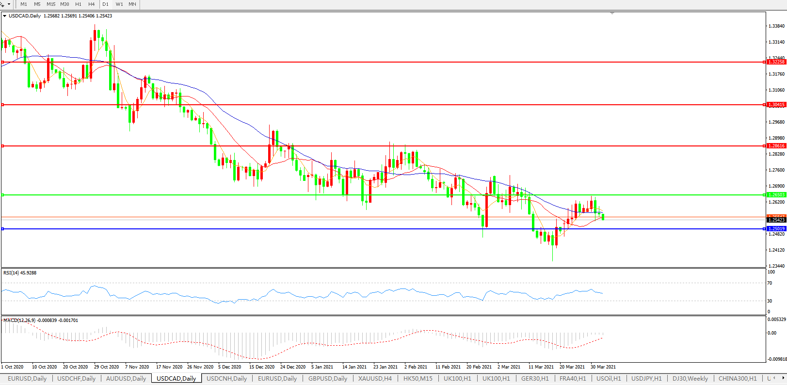 美元兑加元USDCAD 日线图:
