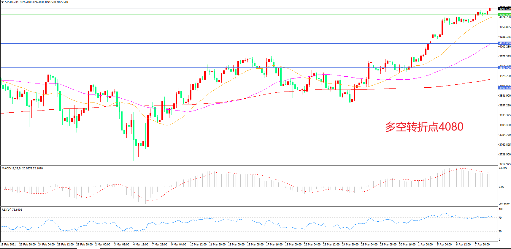 多空转折点:4080.00